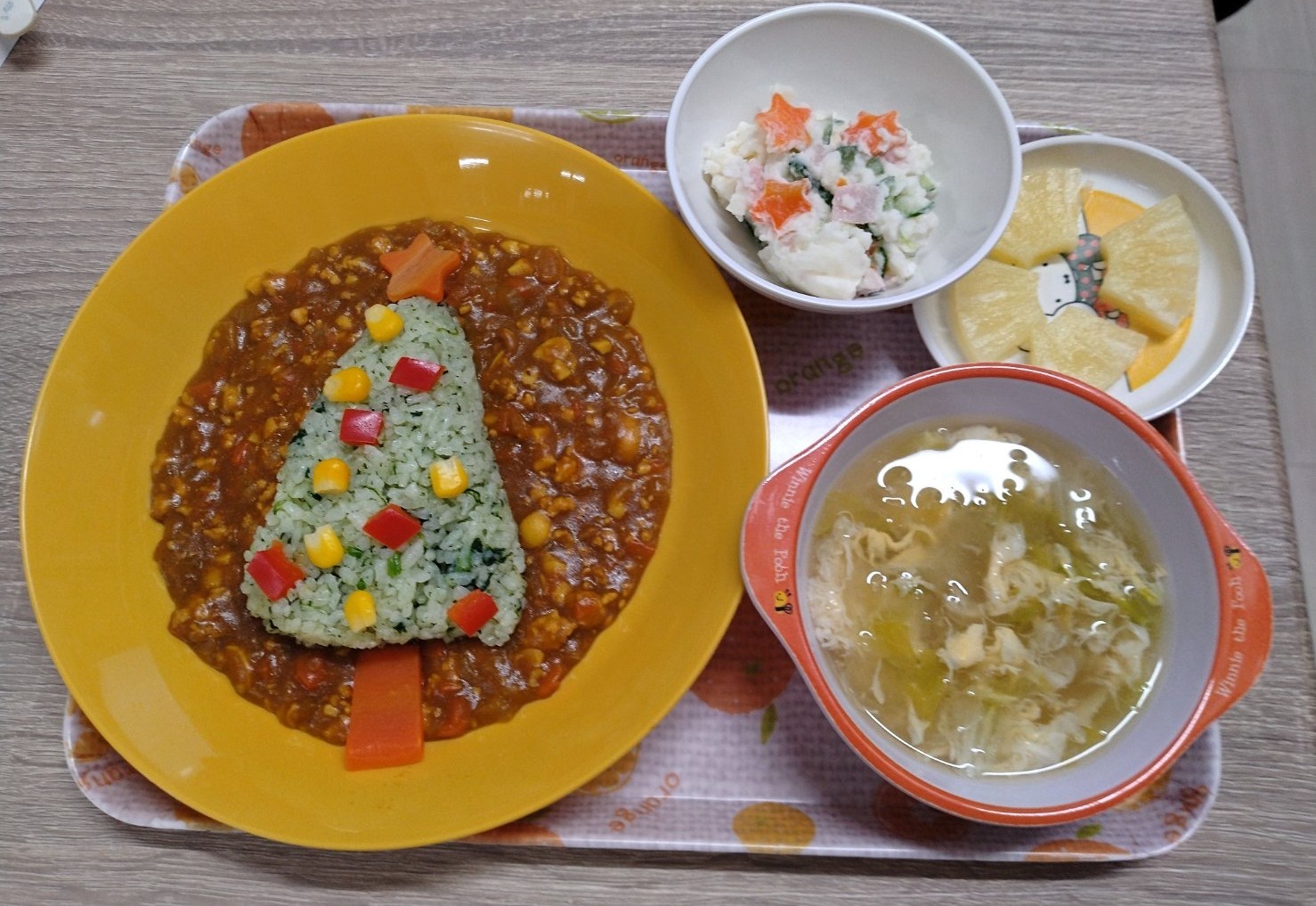 保育園では、クリスマスメニューの給食とおやつでした😋‼